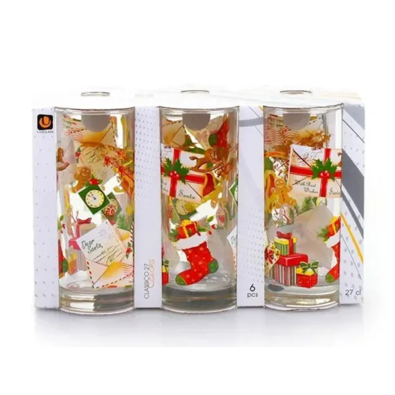 Set 6 pahare de Craciun, 270 ml din sticlă, modele de Craciun - Cadouri, fursecuri, Santa, globuri - Cani si pahare 52,00 RON 0,00 RON