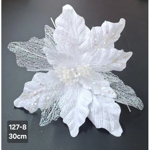 Flori artificiale fir Craciunita, decor Craciun – material textil, cu sclipici, 12 cmV 20,00 RON 0,00 RON
