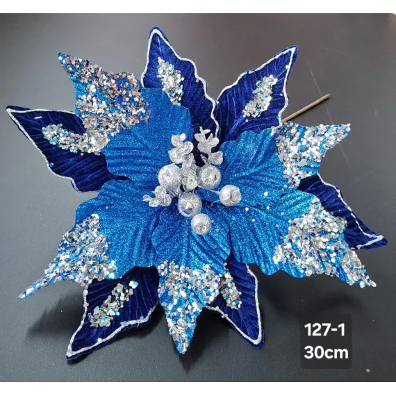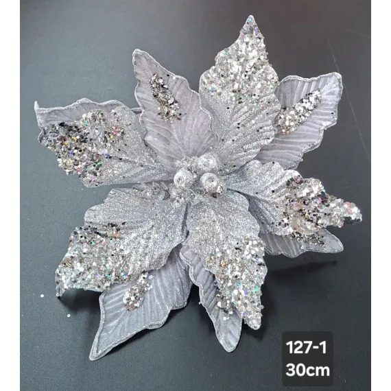 Flori artificial fir Craciunita, decor Craciun – material textil, cu sclipici, 12 cm 20,00 RON 0,00 RON