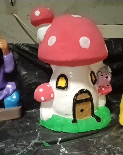 Adaugă un farmec de poveste grădinii tale cu această ciupercă decorativă tip căsuță, realizată din beton rezistent, ideală pentru decorarea curților, grădinilor, teraselor sau spațiilor verzi.