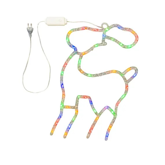 Cu o dimensiune de 46x27 cm, renul LED este suficient de mare pentru a deveni un punct central în decorul de Crăciun, fără a ocupa prea mult spațiu. Construcția sa este realizată din tuburi transparente din PVC rezistent, care încorporează micro LED-uri multicolore (roșu, verde, albastru, galben), creând un efect luminos uniform și intens. Datorită designului conturat, forma renului este clară și bine definită, vizibilă atât ziua cât și noaptea, aducând o notă magică în orice încăpere.