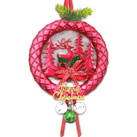 Adaugă un strop de magie festivă locuinței tale cu această coroniță de Crăciun decorativă, ideală pentru ușă, geam sau perete. Realizată din materiale de calitate, coronița redă perfect spiritul sărbătorilor, combinând culorile tradiționale – verde, roșu și auriu – într-un design elegant și modern.