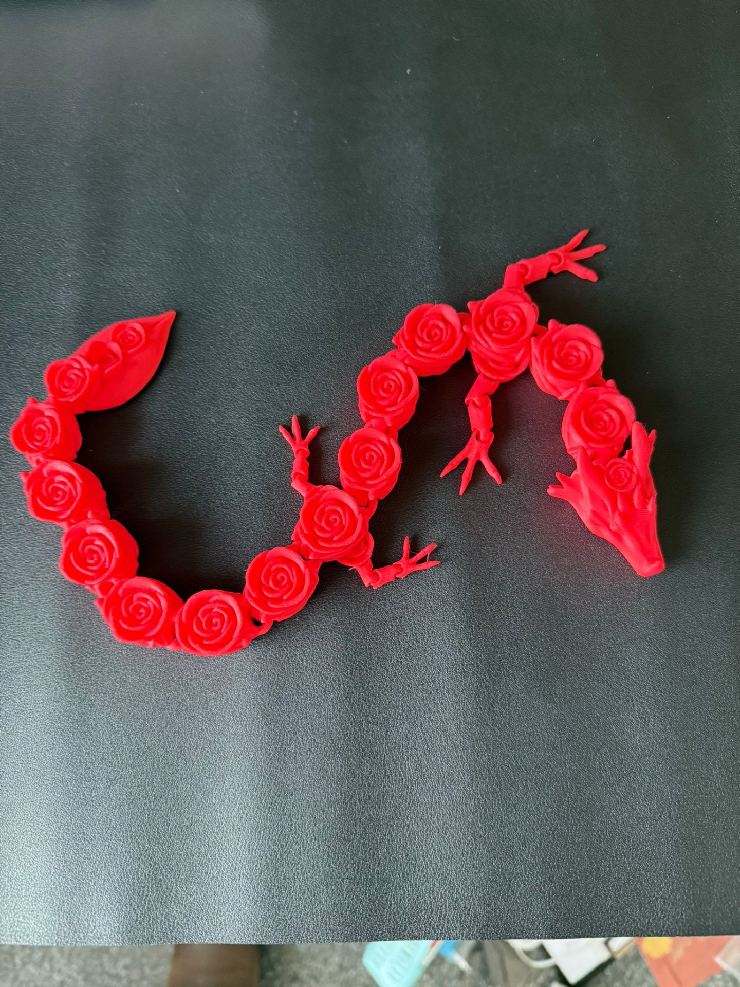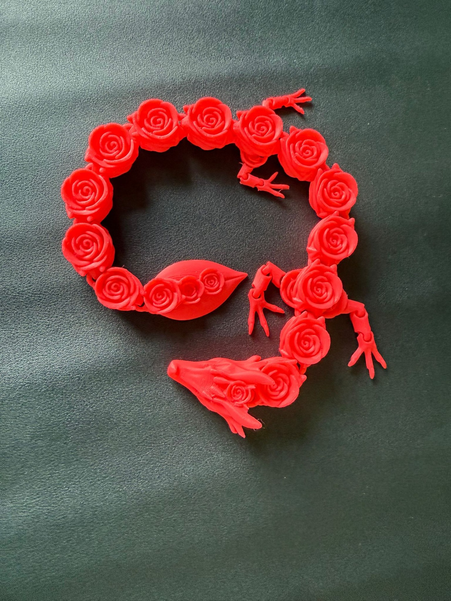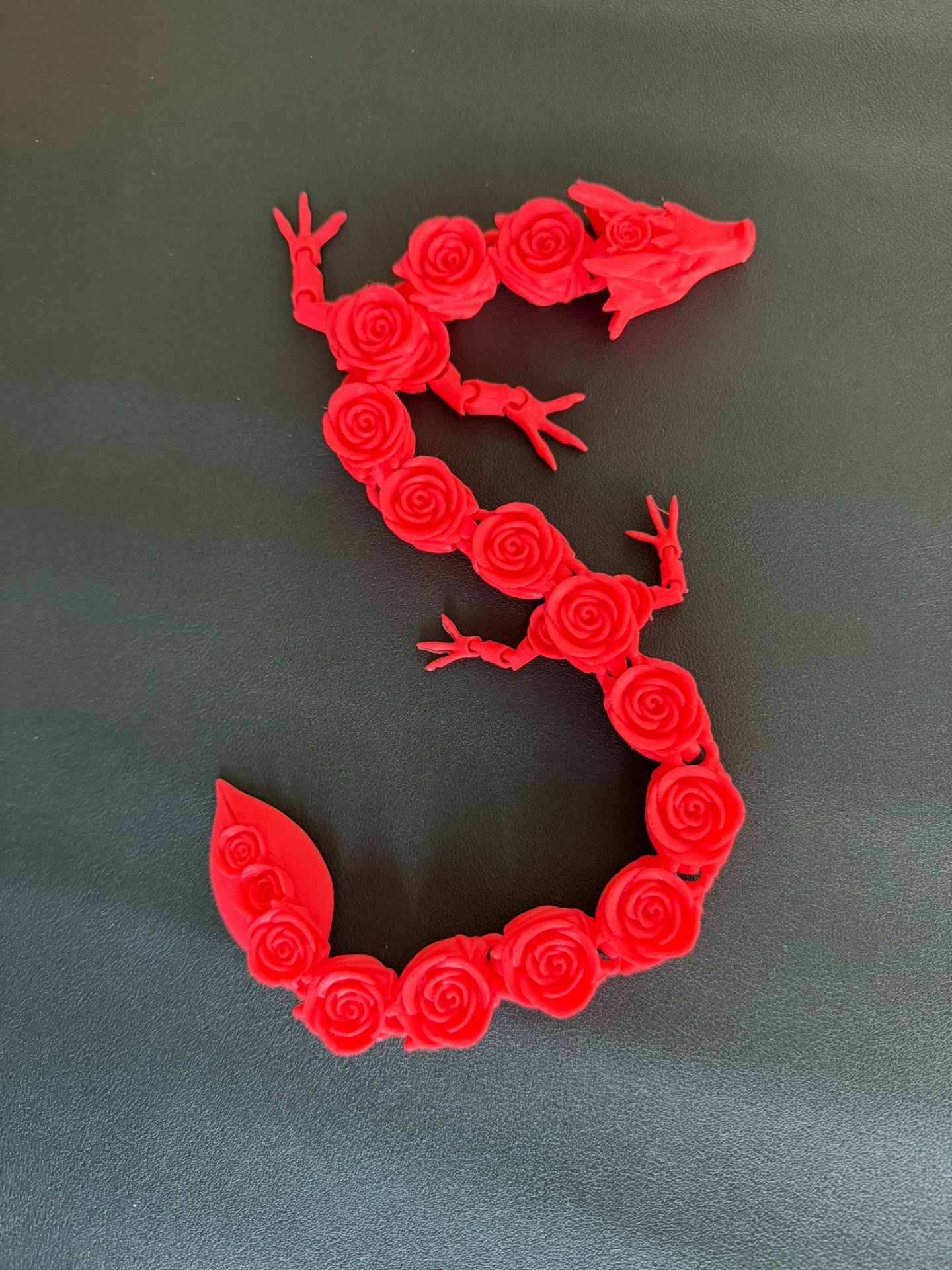 Dragon decorativ realizat prin printare 3D, cu un design spectaculos format din elemente tip trandafir, care îi oferă un aspect elegant și unic. Ideal ca piesă de decor, cadou special sau obiect de colecție.