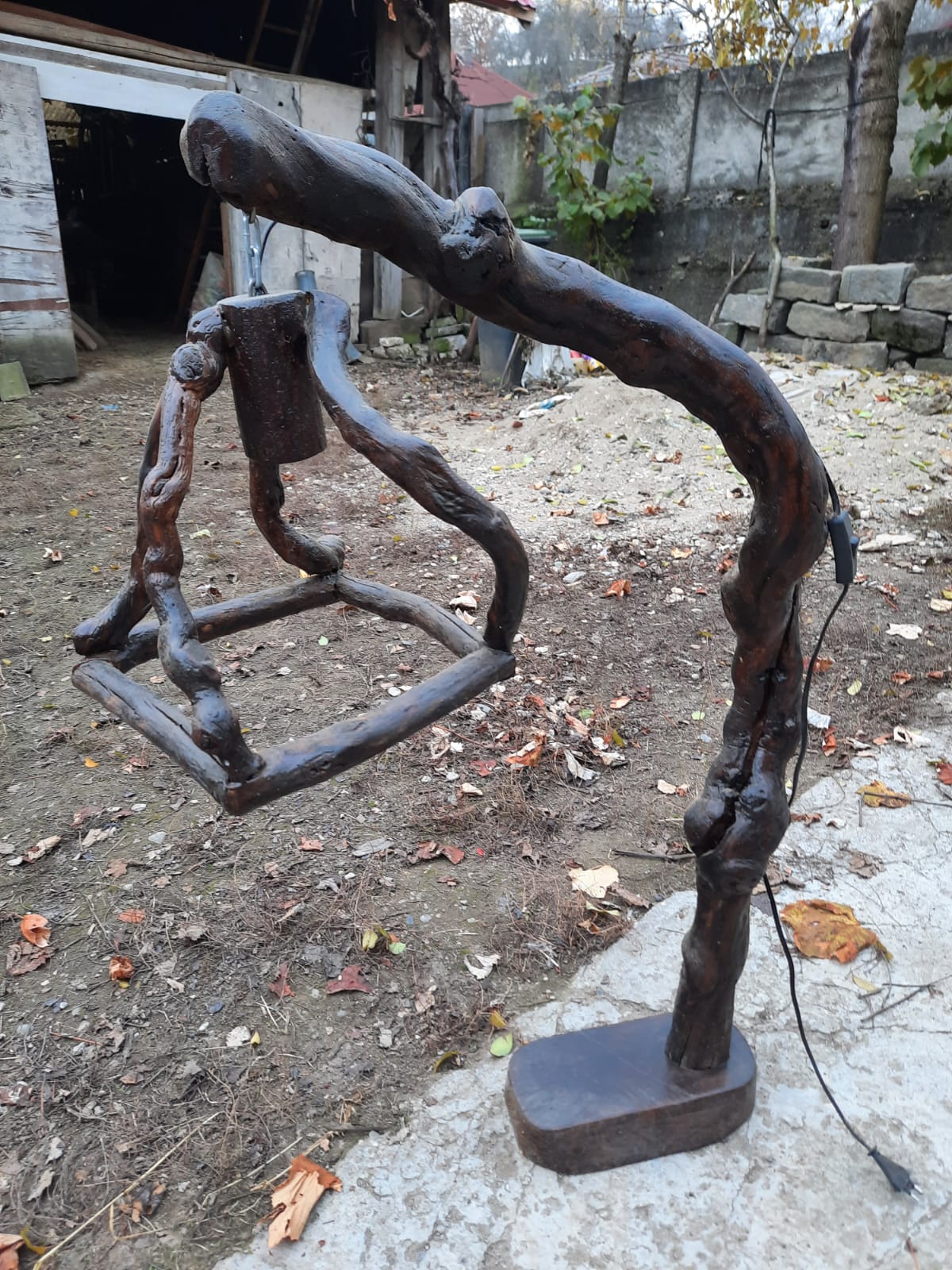 Lampadar realizat manual din lemn masiv natural, lucrat artizanal, fiecare piesă fiind unică prin forma, textura și nervurile lemnului. Designul organic, cu linii fluide și structură sculpturală, transformă acest lampadar într-un element decorativ statement, ideal pentru spații care pun accent pe autenticitate și stil.