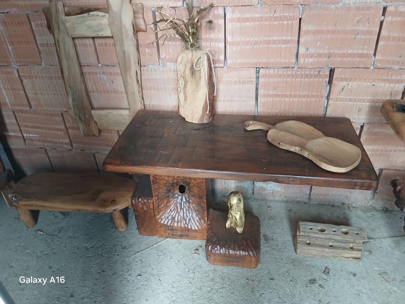 Fiecare element este realizat manual, iar formele, nodurile și variațiile naturale ale lemnului transformă această piesă într-un obiect de mobilier unic, cu personalitate puternică.