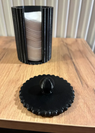 Adaugă un plus de eleganță băii tale cu acest organizator vertical pentru dischete demachiante. Designul texturat și capacul cu mâner oferă un aspect rafinat, păstrând în același timp produsele cosmetice protejate de praf și umezeală.