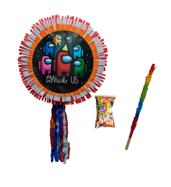 Pinata este un accesoriu pentru petreceri, ce se umple cu dulciuri, confeti, jucarioare de mici dimensiuni,accesorii de petrecere etc. Ea trebuie agatata la o inaltime optima pentru a fi lovita cu bata de catre invitati. Ea este confectionata din carton si prin tehnica papier mache. Are o capacitate de umplere de5-10 litri si rezista la o sarcina de pana la 2 kg a umpluturii. Dimensiunile aproximative sunt de 35 cm in diametru si produsul are o greutate de 1 kg. Vine fara umplutura! Batul si o punguta de confeti in set