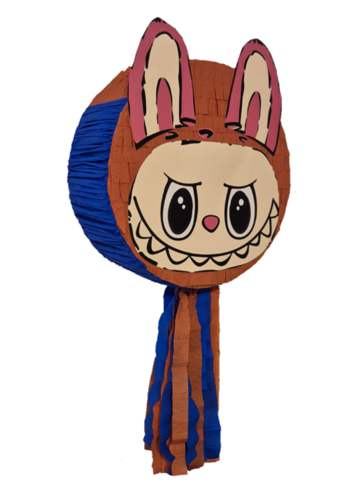 Pinata Labubu Star cu bat si confetti, Pinastar. Orificiu mare pentru umplere, rezistenta, bat din lemn.