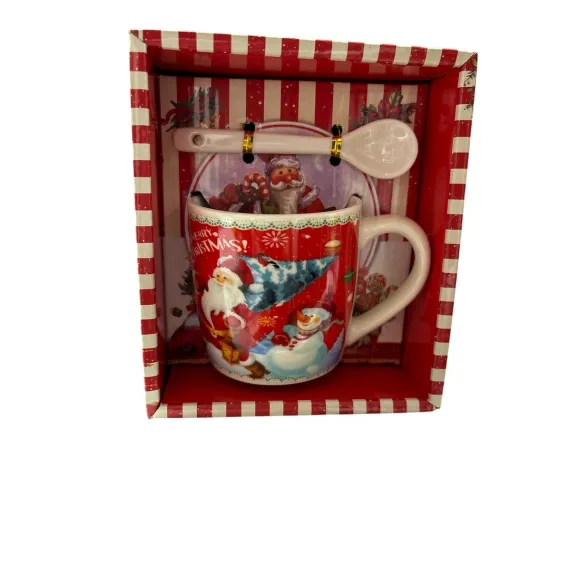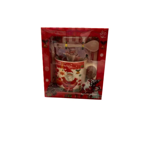 Setul cadou cu cană și linguriță ceramică cu tematică de Crăciun este alegerea perfectă pentru a aduce atmosfera sărbătorilor în fiecare pauză de cafea sau ceai. Realizată din ceramică de calitate, cana are un design vesel cu Moș Crăciun în nuanțe vibrante, fiind ambalată într-o cutie decorativă ce o face ideală pentru a fi oferită cadou. Lingurița ceramică inclusă completează perfect setul, fiind practică și ușor de utilizat. Cana are o capacitate de 270 ml, perfectă pentru băuturi calde precum cafea, ceai, ciocolată caldă sau lapte. Este potrivită pentru acasă, birou sau ca surpriză de sezon pentru cei dragi.
