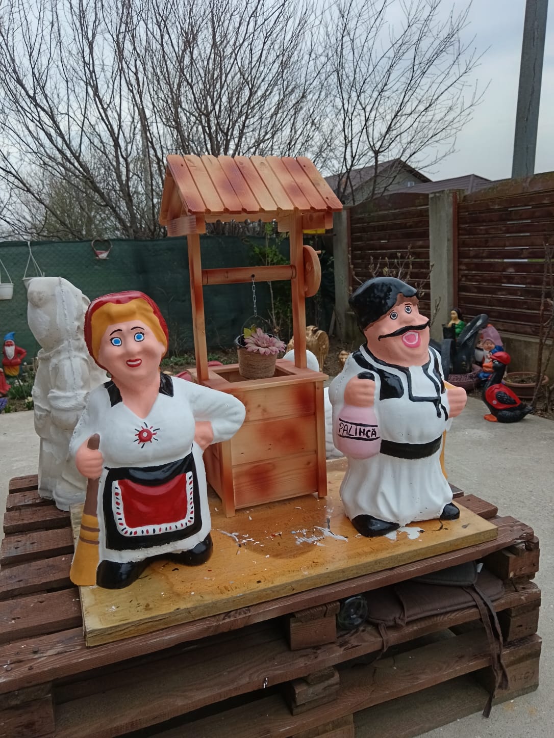 Un set decorativ deosebit, cu un farmec clasic și cald, format din două statuete – Bunica și Bunicul, realizate din beton masiv, ideal pentru grădină, curte, terasă sau intrare în casă.