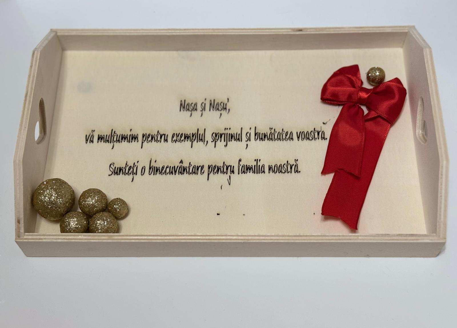 Tăviță din lemn personalizată prin gravură laser – cu mesaj la alegere